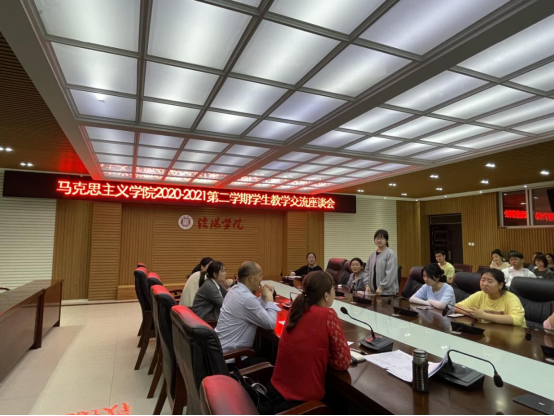 教学副院长陈华林、中国近现代史纲要教研室主任朱新荣、毛泽东思想与中国特色社会主义理论体系概论教研室主任助理冯忆、形势与政策教研室主任助理陈立新、思政课教师和学生代表参加了本次活动。会议由朱新荣老师主持。