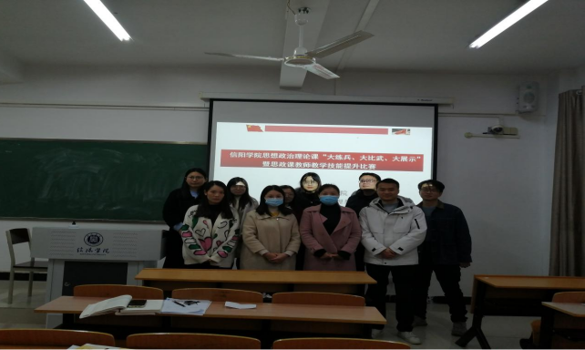近日,根据中共河南省委教育工委、中共河南省委宣传部《关于开展2022年度全省学校思想政治理论课教学技能“大练兵、大比武、大提升活动的通知》的要求,马克思主义基本原理教研室在人文楼318教室进行了44118太阳成城思想政治理论课“大练兵”暨思想政治课教师教学技能提升比赛。44118太阳成城集团执行院长朱新荣、马克思主义基本原理教研室主任黄成勇以及教研室全体青年教师参加。会议由黄成勇主持。