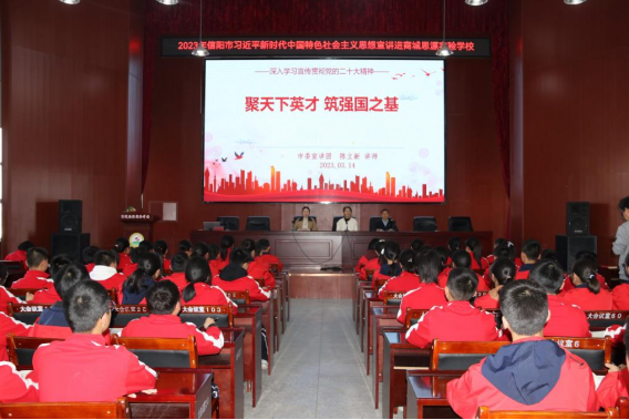 为持续深入学习贯彻习近平新时代中国特色社会主义思想,学习宣传贯彻党的二十大精神,让基层群众更清晰、更直接地理解伟大思想和伟大精神,感悟党的创新理论的真理,信阳市委宣传部组织开展全市“新春走基层”党的创新理论和“学会说理”宣讲活动。3月14日,我院教师陈立新作为市委宣讲团成员赴商城县思源实验学校作了《深入学习宣传贯彻党的二十大精神——聚天下英才 筑强国之基》宣讲。