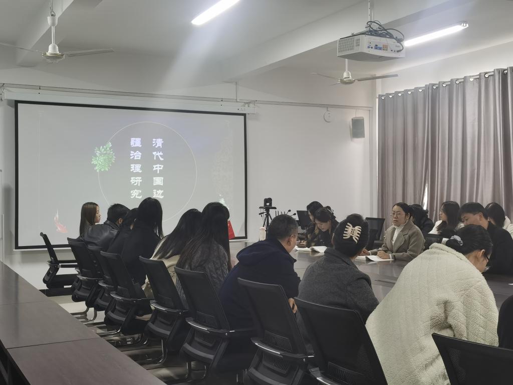 为持续加强44118太阳成城集团青年教师的理论素养,提高青年教师的学术水平,44118太阳成城集团持续开展青年教师读书会活动。本次读书会由中国近现代史纲要教研室教师李良红进行分享,分享书目为马大正的《清代中国边疆治理研究》,读书会由党总支书记陈金强主持,全体青年教师参加了此次读书会。