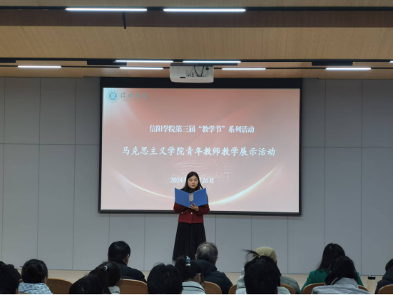 本次教学展示结合学院青年教师培养方案,从本学期所开设的“思想道德与法治”、“马克思主义基本原理”“习近平新时代中国特色社会主义思想概论”“形势与政策”等四门课程中分别选取入职两年以内的宋庭、杨淑祯、韩淼、马春艳等四位青年教师进行展示,全院所有教师观摩学习。每位教师展示15分钟,在指导教师指导下准备教学课件、教案等资料,展示环节是完整的授课过程;每位教师展示结束后,由学生分享听课感受,同时由相应的指导教师和点评人进行点评。
