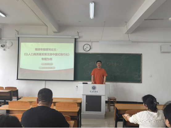 第二阶段,黄成扬老师围绕教学与科研的紧密联系,以《以人口高质量发展支撑中国式现代化》专题为例,分享了教学科研经验。他提出了多个富有启发性的研究主题,包括“习近平关于人口问题重要论述的原创性贡献”“习近平关于人口工作重要论述的多维审视”,以及“以人口高质量发展支撑中国式现代化的逻辑理路与实践进路”等,为参会教师提供了丰富的研究思路。