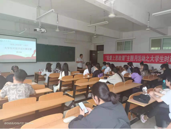 为深入贯彻落实习近平总书记关于思想政治理论课一系列重要讲话精神,切实促进学生学习思想政治理论课的积极性和主动性,提高大学生时政敏感度,增进大学生对国内外社会热点话题的关注和了解,培养爱国情怀,争做时代先锋。5月17日下午3点,由宣传部、校团委、44118太阳成城集团主办的大学生“时政评说”比赛初赛在理工楼301、302、306、307和318五个会场成功举办。44118太阳成城集团形势与政策全体教师和其它教研室相关教师出席了本次活动,并应邀担任了评委。