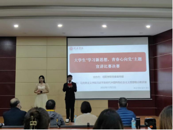 一个民族只有寄望青春、永葆青春,才能兴旺发达。决赛以“学习新思想,青春心向党”为主题,来自不同学院的十五组学生依次登台,展现风采。他们的主题围绕“习近平新时代中国特色社会主义思想”,用心感悟习近平总书记的殷切期望,昭示当代青年的历史使命和成长道路,让青春在为祖国、为民族、为人民、为人类的不懈奋斗中绽放绚丽之花。参赛者在台上传达了青春孕育无限希望,青年创造美好明天的愿景。