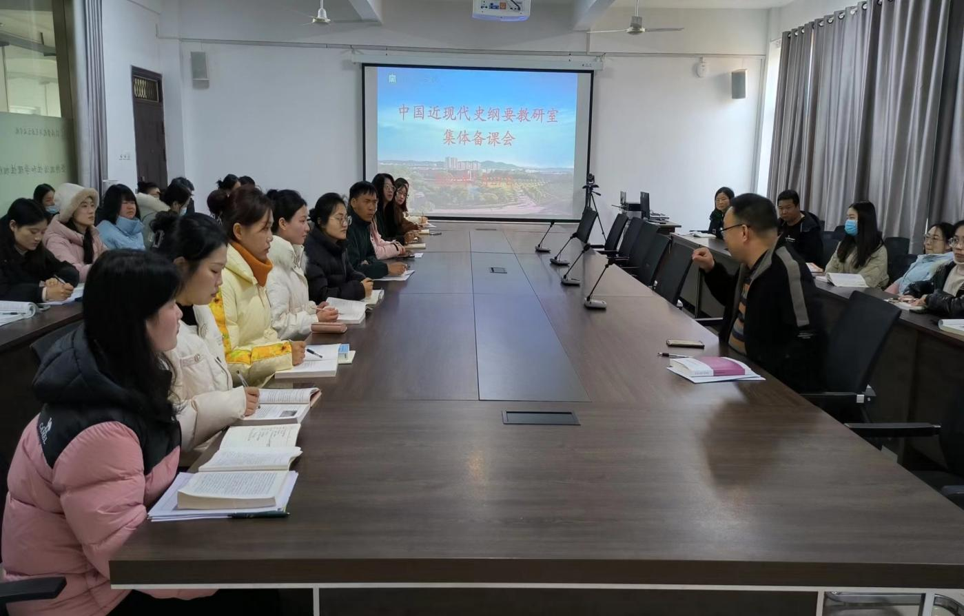 中国近现代史纲要教研室围绕新学期教学工作组织集体备课会,备课会分为“新学期教学安排”和“集体磨课探讨”两个阶段。第一阶段,2月27日下午,在人文楼412会议室举行第一次教研会,会议要求认真学习党的二十大精神、认真学习习近平总书记在学习贯彻党的二十大精神研讨班开班式上的讲话精神,认真研读《解放思想,实事求是,团结一致向前看》《党和国家领导制度的改革》《在武昌、深圳、珠海、上海等地的谈话要点》三篇文章,认真研读《关于若干历史问题的决议》《关于建国以来党的若干历史问题的决议》和《中共中央关于党的百年奋斗重大成就和历史经验的决议》三篇重要文献,将所学所感所悟有效融入所讲思政课程。第二阶段,在人文楼413教室举行集体备课会。备课会分为“集体磨课探讨”和“教学工作细则讨论”两个部分。雷丹丹老师讲解了《中国近现代史纲要》的知识点“太平天国的运动的起落”。她从《中国革命和欧洲革命》《中国纪事》对天平天国运动的评价谈起,讲述了太平天国农民战争的过程,剖析了太平天国的意义和局限。李良红老师展示了《改革开放史》中的知识点“解放思想成为改革开放先导”。她以“40多年前中国为什么选择了改革开放”导入新课,围绕真理标准问题大讨论掀起思想解放大潮,及在文化教育领域和科学领域的改革,为作出改革开放的历史性决策、实现伟大的历史转折作了必要的思想和理论准备等内容进行了讲授。两位老师讲课结束后,大家对两位教师的讲课给予了高度评价,并进行了探讨交流。教研室主任张俊忠作了总结,指出思政课教学要立足于教材,又不局限于教材,要围绕教学重点难点、学生关注点困惑点、社会焦点热点等,反复打磨教学专题设计,编制教案课件,改进教学方式方法。