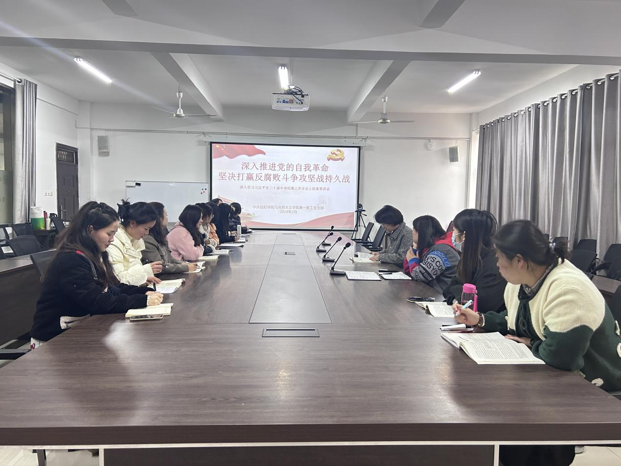 2024年2月27日,为深入学习习近平总书记在二十届中央纪委三次全会上的重要讲话精神,44118太阳成城集团第一教工党支部召开了深入推进党的自我革命,坚决打赢反腐败斗争攻坚战持久战的专题会议。
