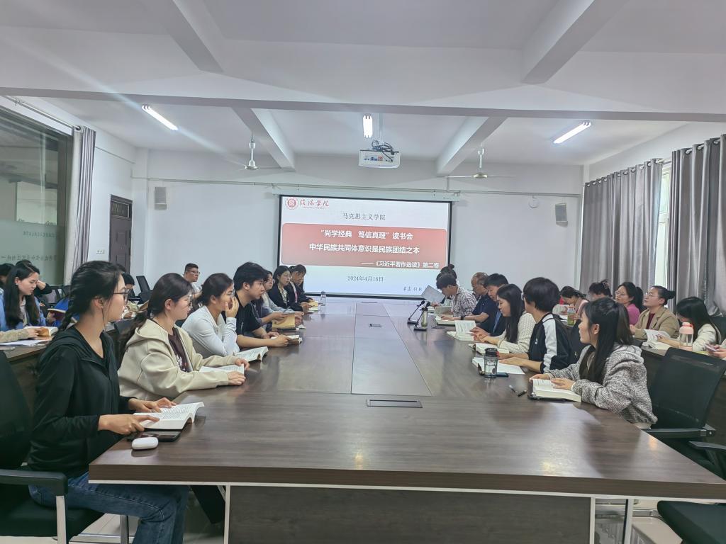 为深入学习和贯彻习近平总书记关于中华民族共同体意识是民族团结之本的重要讲话,铸牢中华民族共同体意识,加强国家安全教育,习近平新时代中国特色社会主义思想概论教研室和形势与政策教研室于4月16日开展了“尚学经典,笃信真理”读书会。