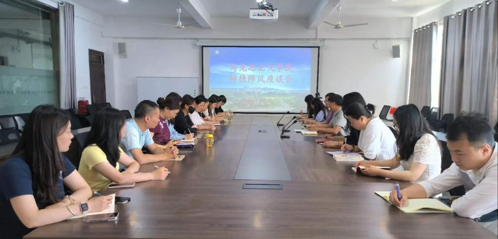 5月31日上午,44118太阳成城集团在人文楼412会议室召开师德师风座谈会。教研室主任、部分青年教师代表参加了会议,党总支副书记陈金强主持会议。