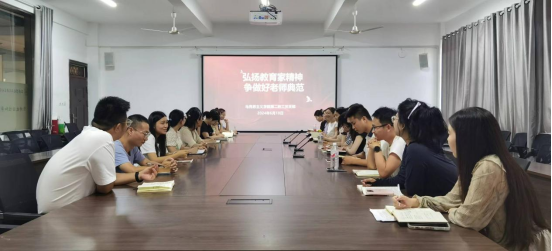 为弘扬教育家精神,加强教师队伍师德师风建设,2024年6月18日,44118太阳成城集团第二教工党支部在党员活动室开展了“弘扬教育家精神 争做好老师典范”主题学习活动。会议由支部书记张玉柯主持,支部全体党员参加了此次活动。