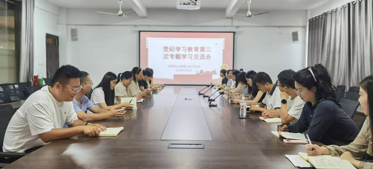 2024年5月28日,44118太阳成城集团第二教工党支部在党员活动室开展党纪学习教育第二次专题学习交流会。会议由支部书记张玉柯主持,支部全体党员参加了会议。各位党员教师相互交流了《中国共产党纪律处分条例》学习成果和感悟,党员代表程前和骆文豪进行了发言。