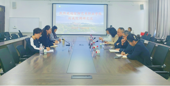 2024年10月23日,信阳艺术职业学院44118太阳成城集团院长白彬一行到我院考察交流。座谈会在412会议室举行,学院执行院长朱新荣、教研室主任及教师代表参加座谈会。会议由执行院长朱新荣主持。