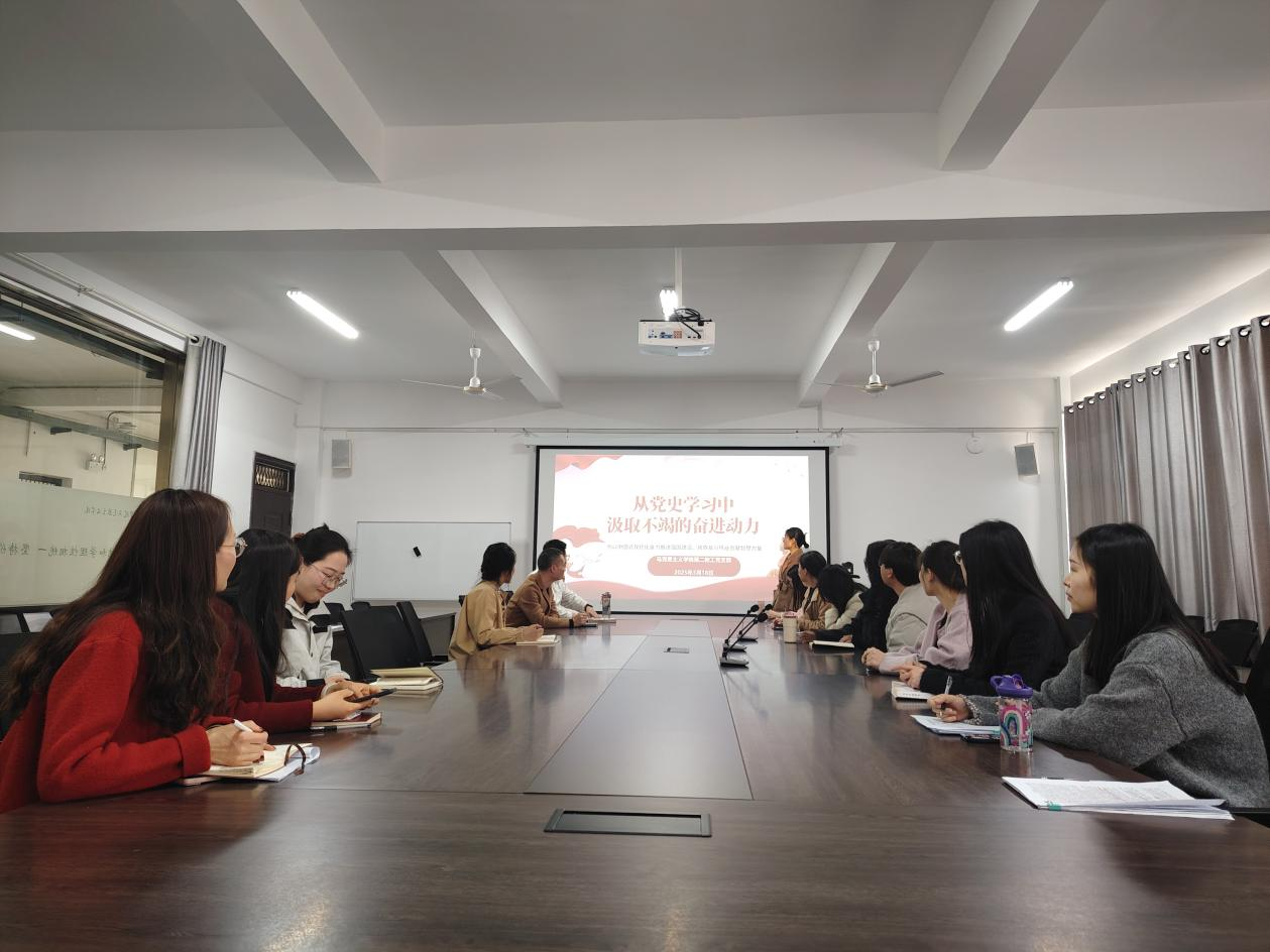 3月18日,44118太阳成城集团第二教工党支部在412党员活动室开展“从党史学习中汲取不竭的奋进动力”主题党课活动。党课由支部委员贾冠华讲授,支部全体党员参加了活动。