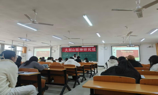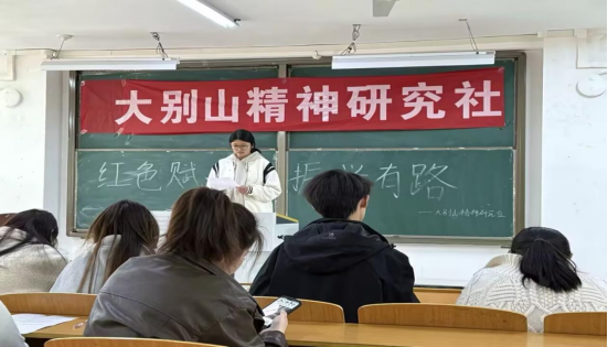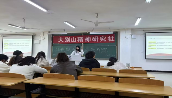 在浉河校区人文楼408教室,社团成员以大别山精神为基,向三大领域进军:红色文化传承板块,他们探寻红色故事,保护修缮遗迹,让红色记忆永不磨灭;乡村振兴实践领域,依托红色资源打造旅游热点,以情怀感召人才归乡,为乡村产业注入活力;生态文明建设方面,秉持先辈守护自然的初心,倡导绿色发展,重塑绿水青山。参赛选手们依次上场,以“红色赋能,振兴有路”为主题,以三大领域方向,用生动的语言、鲜活的事例,提出具有创造性的活动方案,在弘扬红色文化,为社会贡献自己的力量的同时,为大别山精神的传承和发展注入了新的活力。
