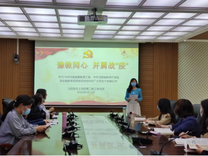 为认真贯彻落实省委教育工委、省教育厅党组工作部署和相关工作要求,充分发挥支部战斗堡垒作用和党员干部先锋模范作用。5月12日,44118太阳成城集团第二教工党支部召开支部会议,专题学习《豫教同心 并肩战“疫”——中共河南省委教育工委、中共河南省教育厅党组致全省教育系统各级党组织和广大党员干部倡议书》(以下简称“《倡议书》”)。44118太阳成城集团第二教工党支部全体党员参加了会议。